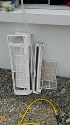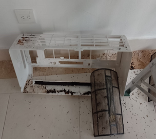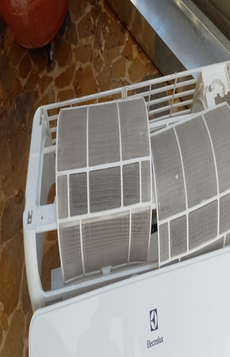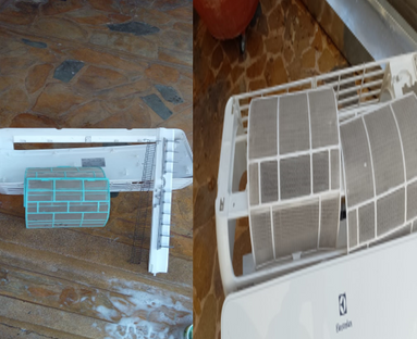 Desarmamos las dos partes principales del aire acondicionado para poder limpiarlas y revisarlas a fondo.